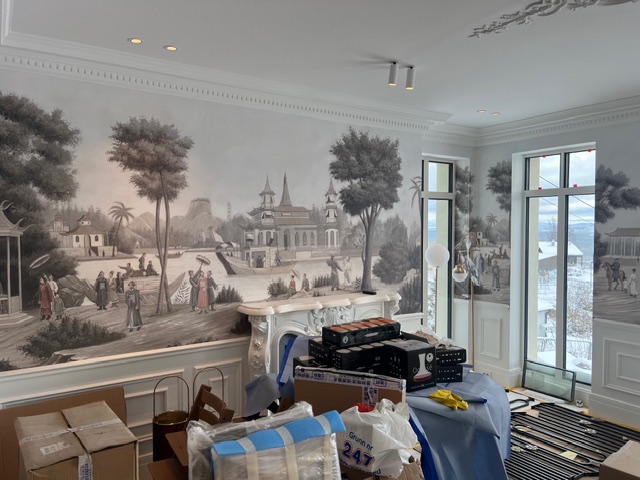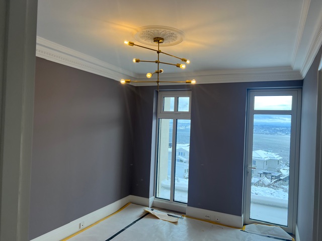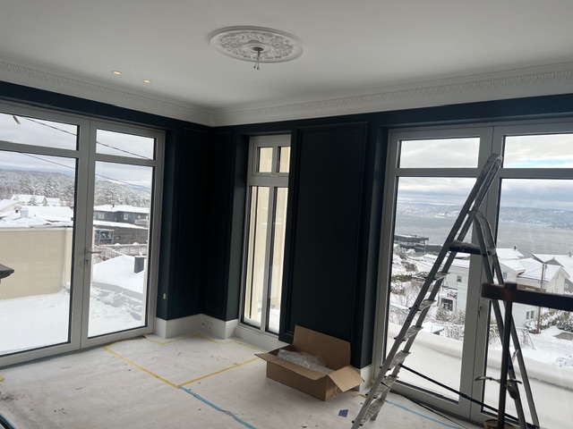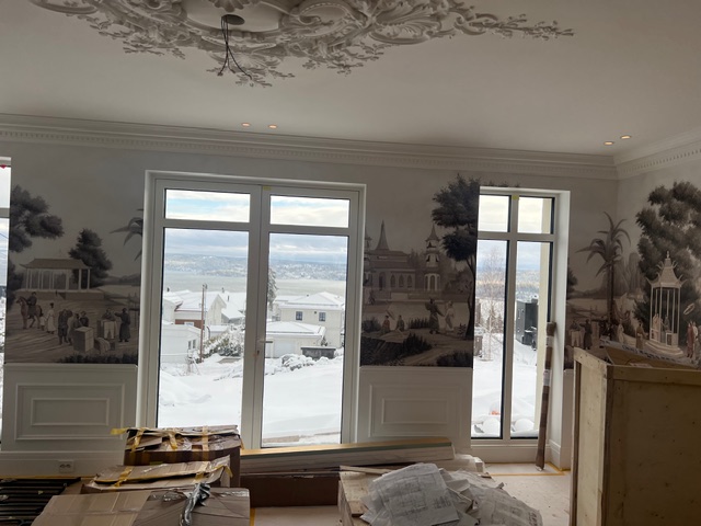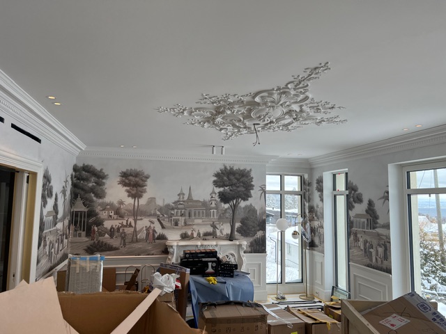 Malermesteren Johansen AS har stått for en omfattende estetisk oppgradering av denne eneboligen på Hurum. Prosjektet krevde nøyaktighet og estetisk sans, da det innebar montering av detaljerte landskapstapeter, dekorative taklister og komplekse fargekombinasjoner. Vi har transformert alt fra baderom til stuer og soverom ved å fremheve boligens klassiske detaljer gjennom moderne overflatebehandling. Resultatet er et sofistikert hjem hvor tradisjonell stukkatur møter dristige fargevalg.