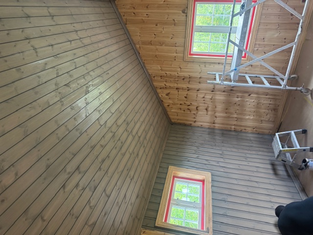 Overflatebehandling av hytte i Valdres