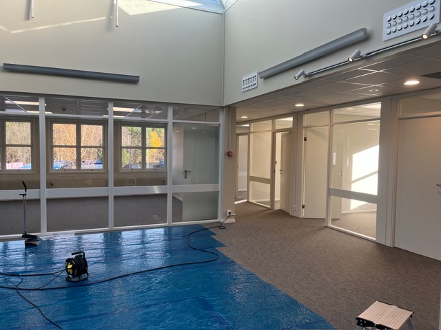 Vi har ferdigstilt oppussing av et venteværelse for et legekontor i Moss. I slike lokaler er det avgjørende med en kombinasjon av estetisk ro og teknisk slitestyrke. Vi har benyttet spesialmaling som er enkel å rengjøre, samtidig som fargevalget bidrar til å skape en profesjonell og beroligende atmosfære for pasientene.